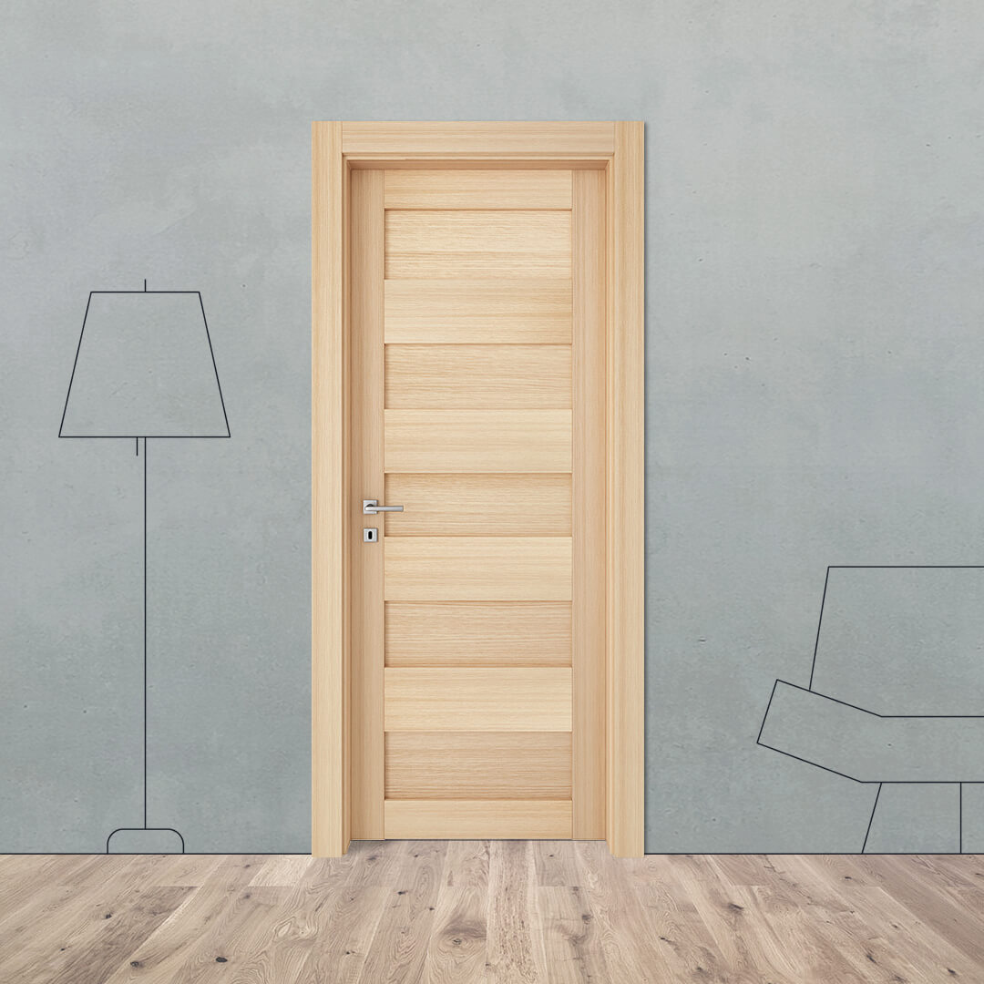 Combinazioni libere: possibilità di mixare finiture tra pannelli centrali, elementi massellati, telai e coprifili — per un risultato davvero su misura.